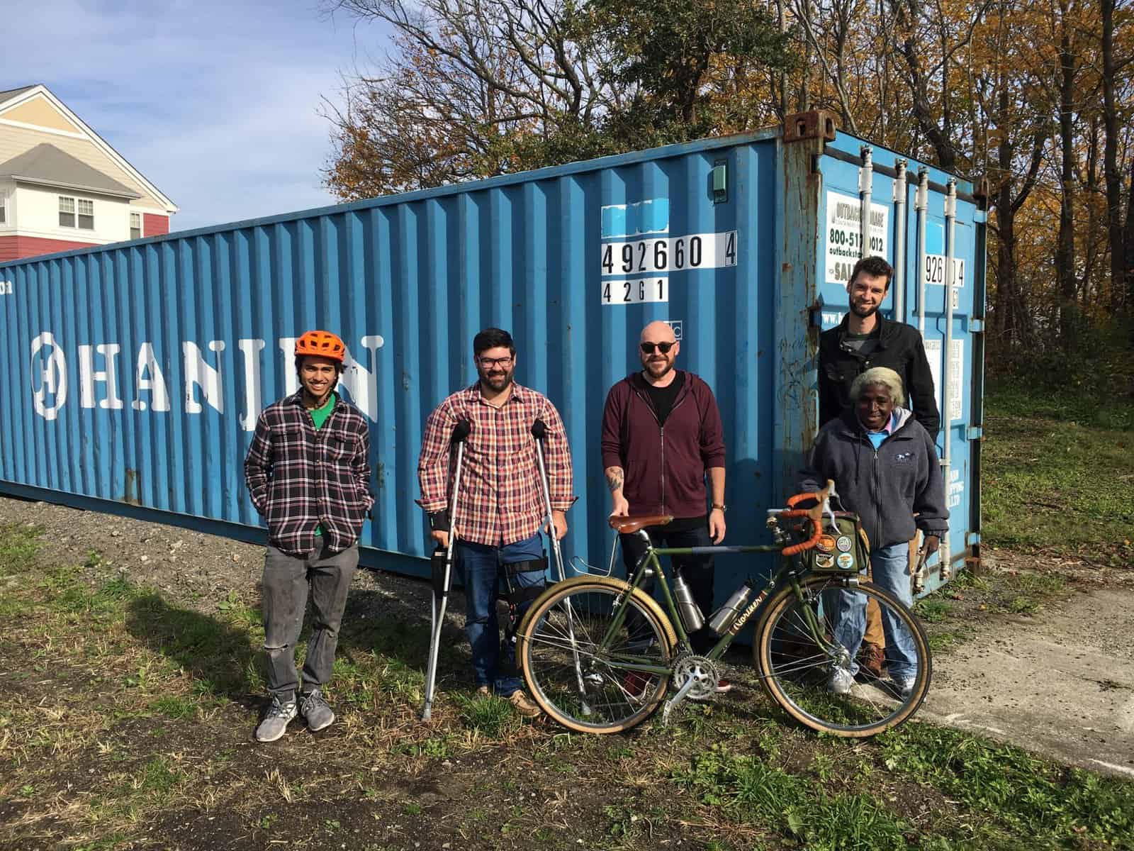 Our old green Bike Library is now retired and all contents, bikes and tools etc, have been moved to the new location on Sunset Ave next to Miantonomi Park. We’ll soon be painting the containers to protect them for the winter before decorating them with murals, cutting doors and building up the inside. Shelving and structures inside the containers will host a bike workshop, bike parts, tools, and bikes. Along with a weather proof canopy we’ll be working towards more ground work, trail clearing, solar panels, water collections and gardens.