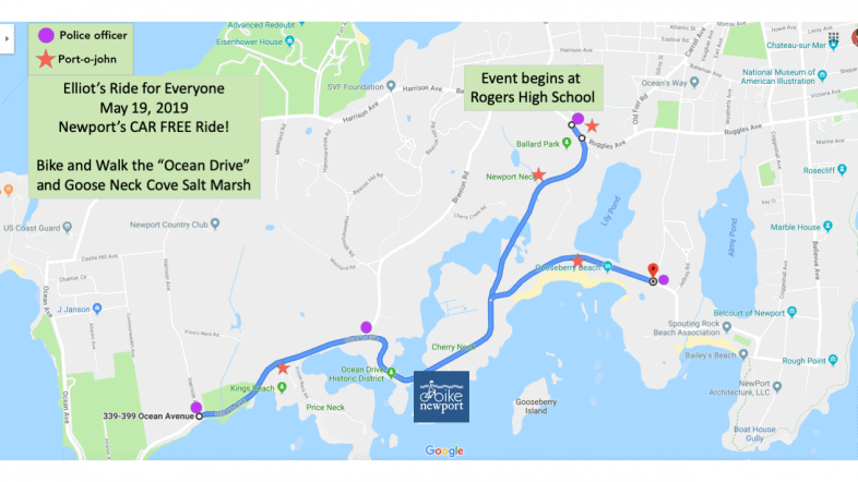 Elliot’s Ride was possible thanks to the City of Newport RI and Newport RI Police Department, Gold Sponsors KVH Industries and Teri Degnan Real Estate along with Standard Modern Printing, Discover Newport, VHB, ecoRI Environmental News, P3 Global Management, Newport Bike Share, Newport County YMCA, Rhode Island Department of Transportation, and Reynolds DeWalt.