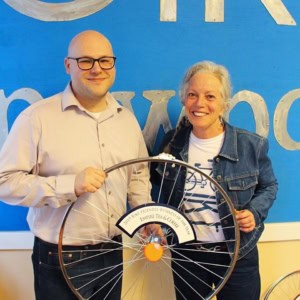 The Bike-Friendly Businesses of 2019 were revealed – honoring Parlor Bar & Kitchen and Empire Tea & Coffee for their support of bicycling, bicyclists, and Bike Newport. The award was again fabricated by local artists Howard and Mary Newman – who annually express their support and enthusiasm for improved biking by creating the awards that honor bike friendly businesses. “We’re sorry we can’t be there,” they shared, “Huge thanks to Parlor and Empire for encouraging more people to choose bicycles to get around through their bike-friendly hospitality.”