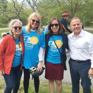(l-r) Bari Freeman, Superintendent of Schools Colleen Jermain, Mayor Jamie Bova, and US Congressman David Cicilline welcomed participants to Elliot’s Ride for Everyone