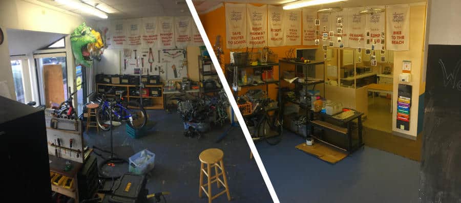 It’s been two and half years since Bike Newport moved into 62 Broadway, so we thought it was about time we had a revamp and treated our trusty space to a lick of paint. It took five staff three days to scrub, mop, paint and polish and this is the result. Come and see it for yourself, it’s quite remarkable what new paint and reorganization can do!